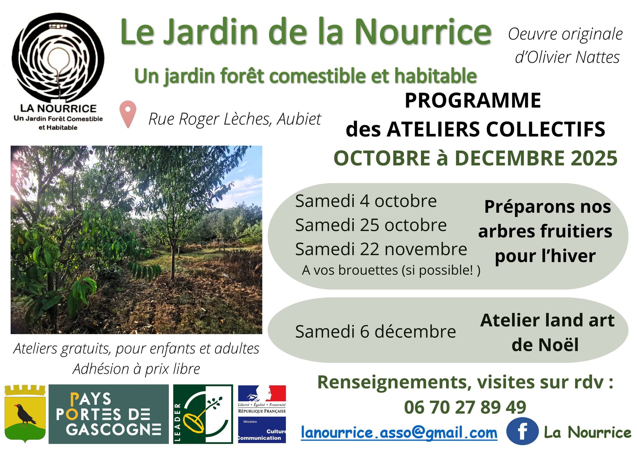 The workshop is free and open to children and adults. For further information, please call 06 70 27 89 49 or email lanourrice.asso@gmail.com.