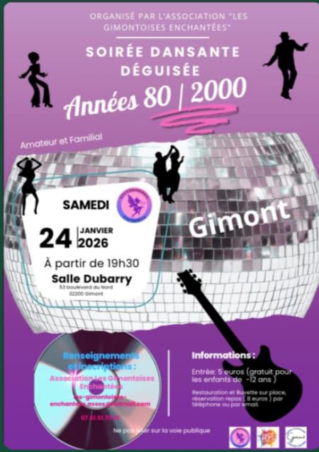 The dance party disguised in the 80s/2000s is organized by the association "Les Gimontoises enchantées" from 7:30 PM at the Dubarry hall.