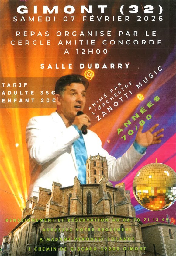 The meal of the Cercle Amitié Concorde is organized on Saturday, February 7th at 12 pm at the cultural hall of Gimont.