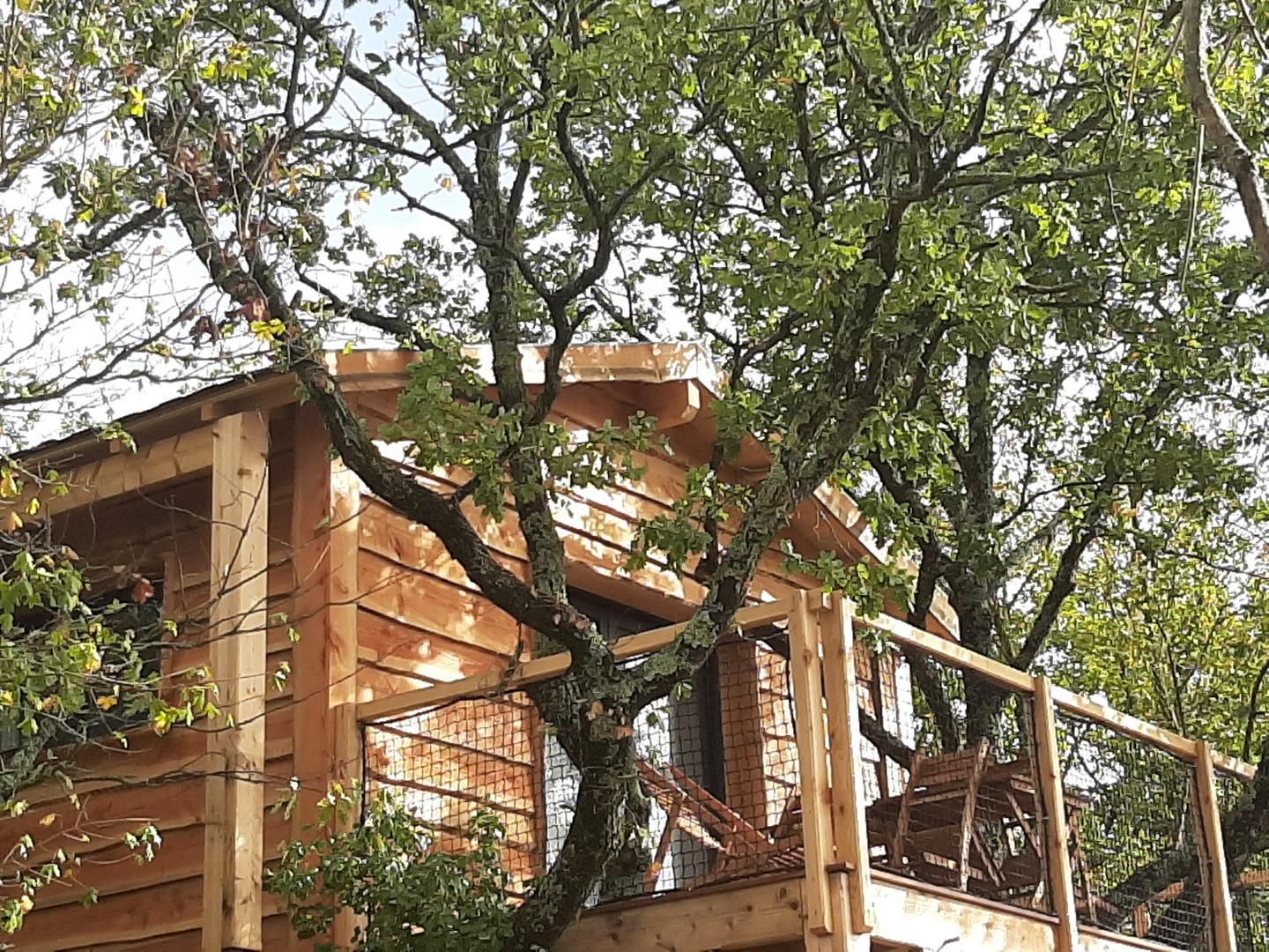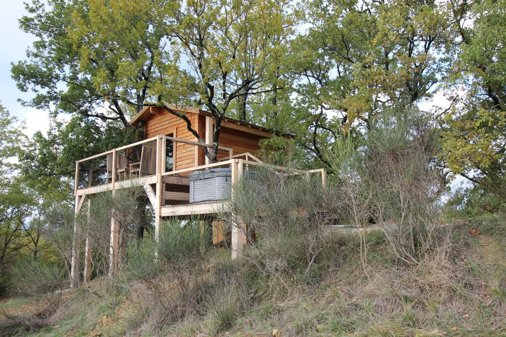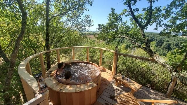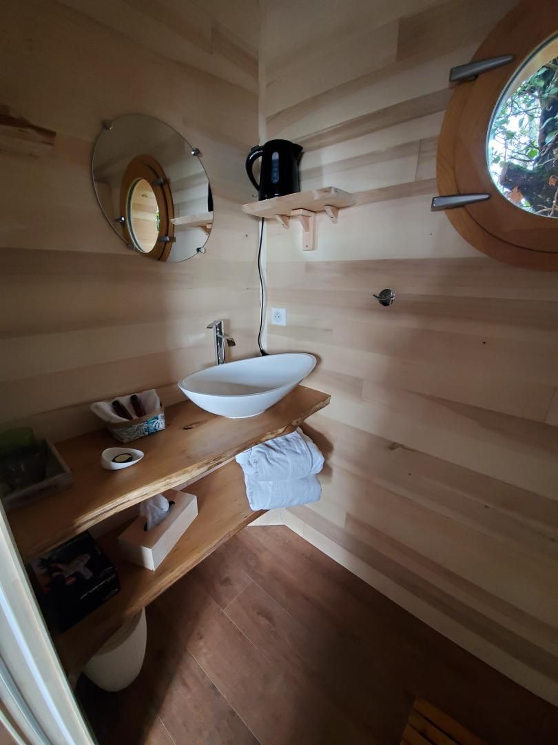 Perched in the trees of a Natura 2000 site, the "Orchis Spa" and "Ophrys Bulles" tree houses invite you to unwind in the heart of nature. Leave your car in the parking lot, enjoy a stroll through the meadow to reach the tree houses, and discover the breathtaking views of the Pyrenees mountains, the Gascon landscape, and the surrounding countryside. Each tree house has been perfectly integrated into the trees to minimize its impact. In an eco-friendly approach, lighting is provided by solar lanterns, and wastewater is treated using a phytoremediation system.