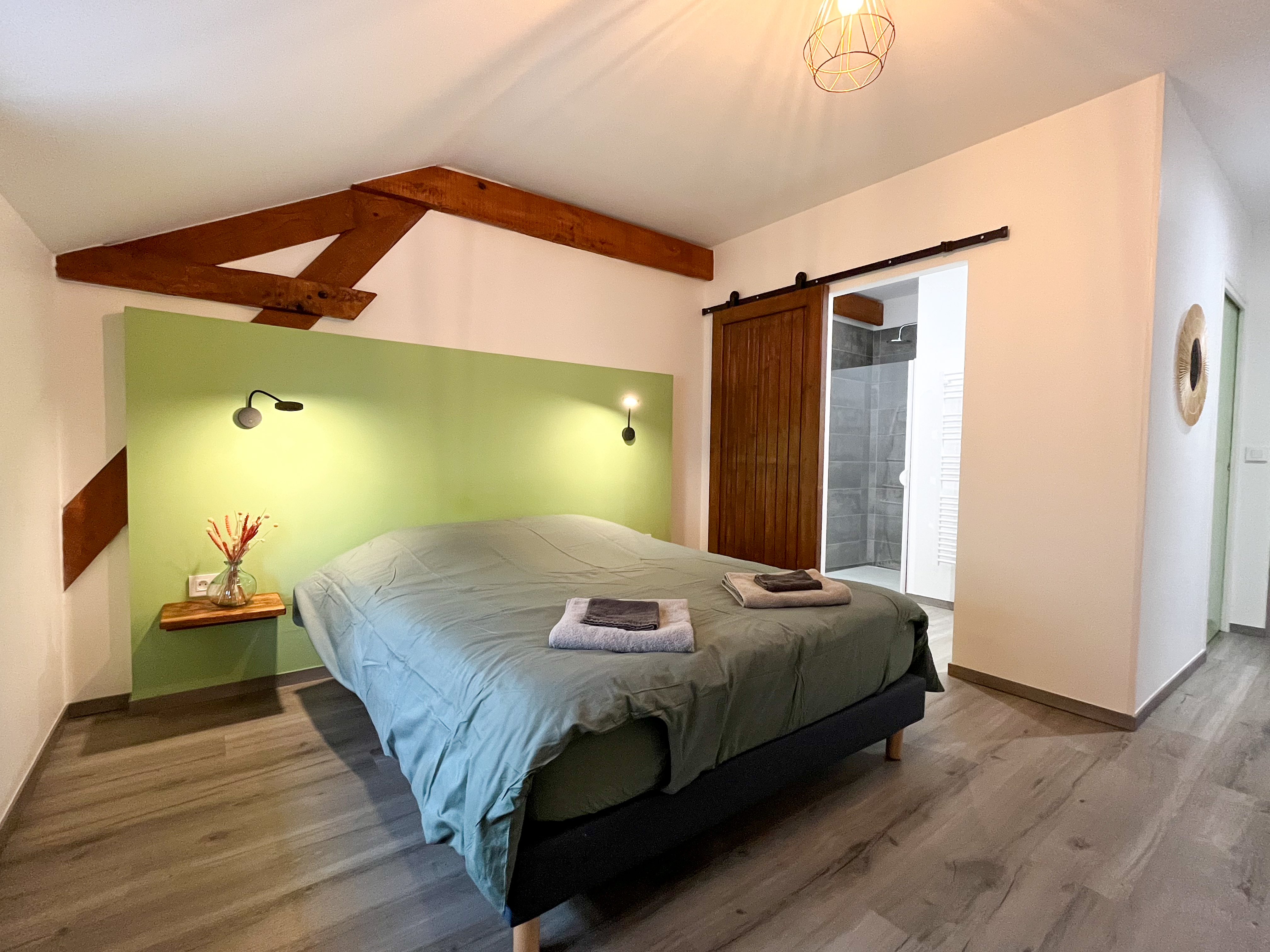 -Chambre Provence (2 pers), 23m2, 1 lit double 160. Salle de bain privée avec douche et wc séparé.