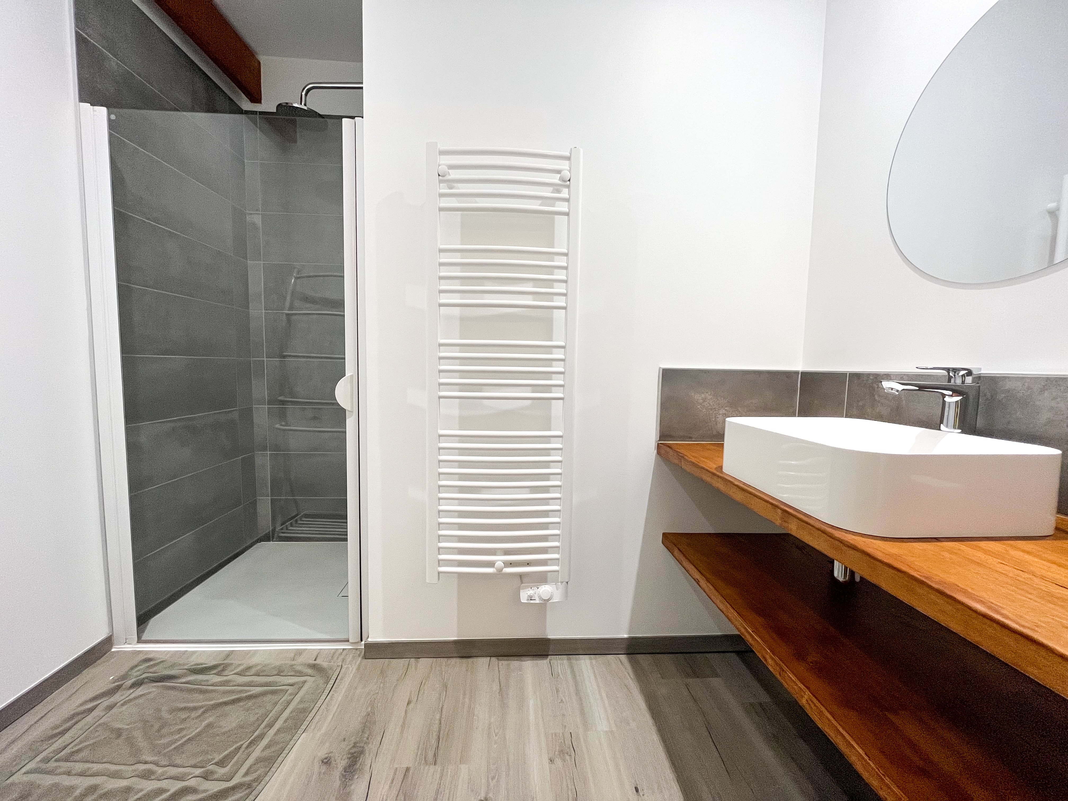 Toutes les chambres sont à l’étage, accessibles par l’escalier extérieur. Elles partagent la même salle de bain avec douche, bidet et wc séparé.