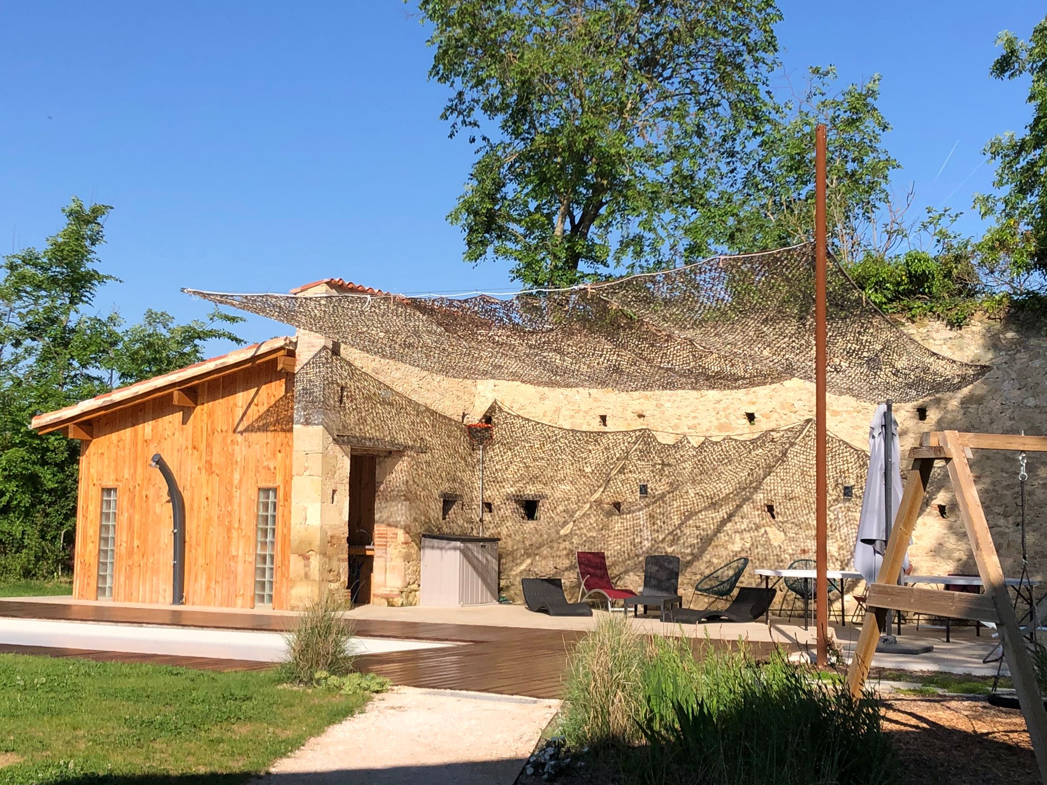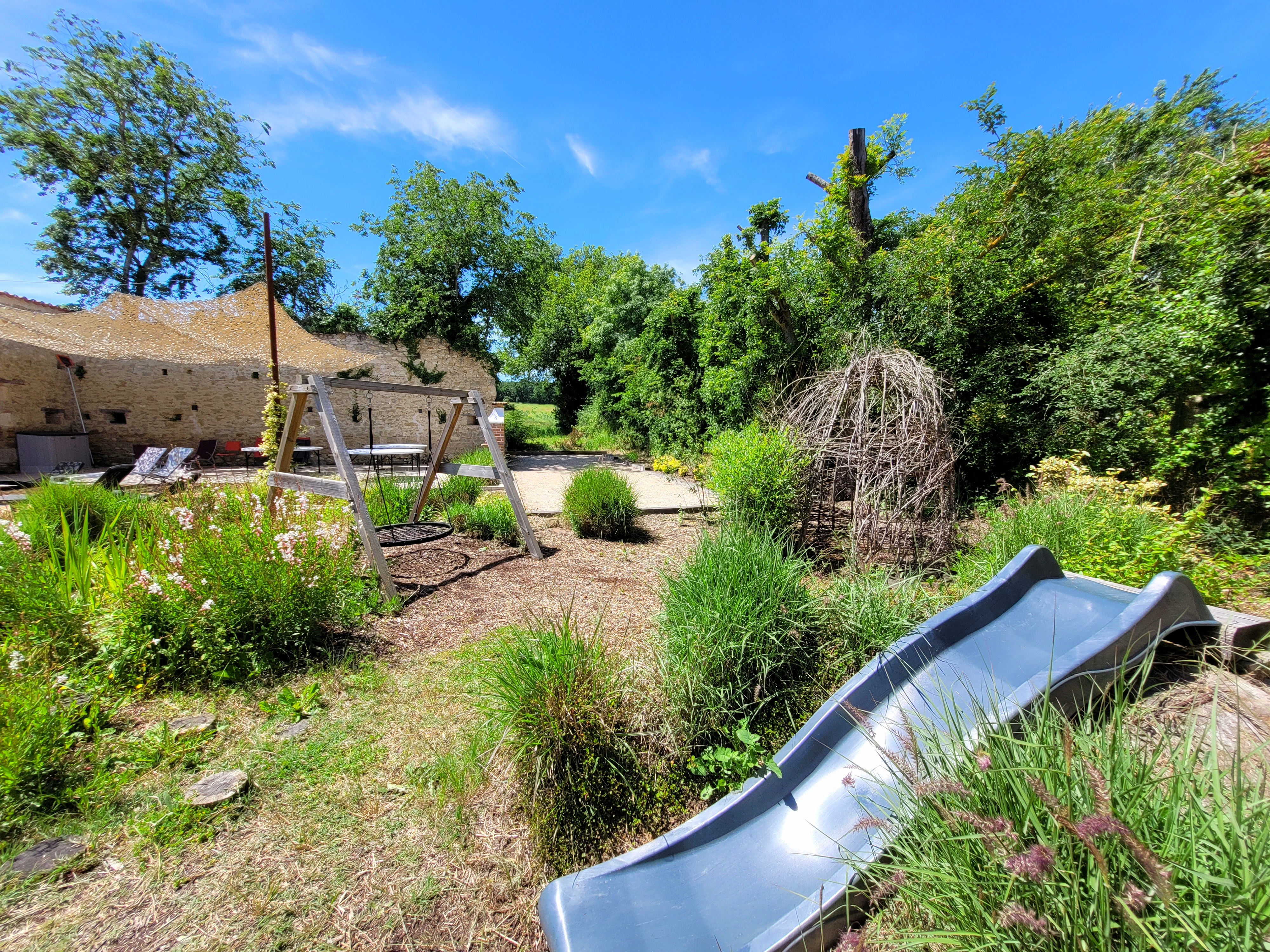 Un paradis pour les familles et enfants avec toboggan végétalisé, balançoire, cabane et piscine privée chauffée, terrain de pétanque, bbq, pool house, ping-pong...