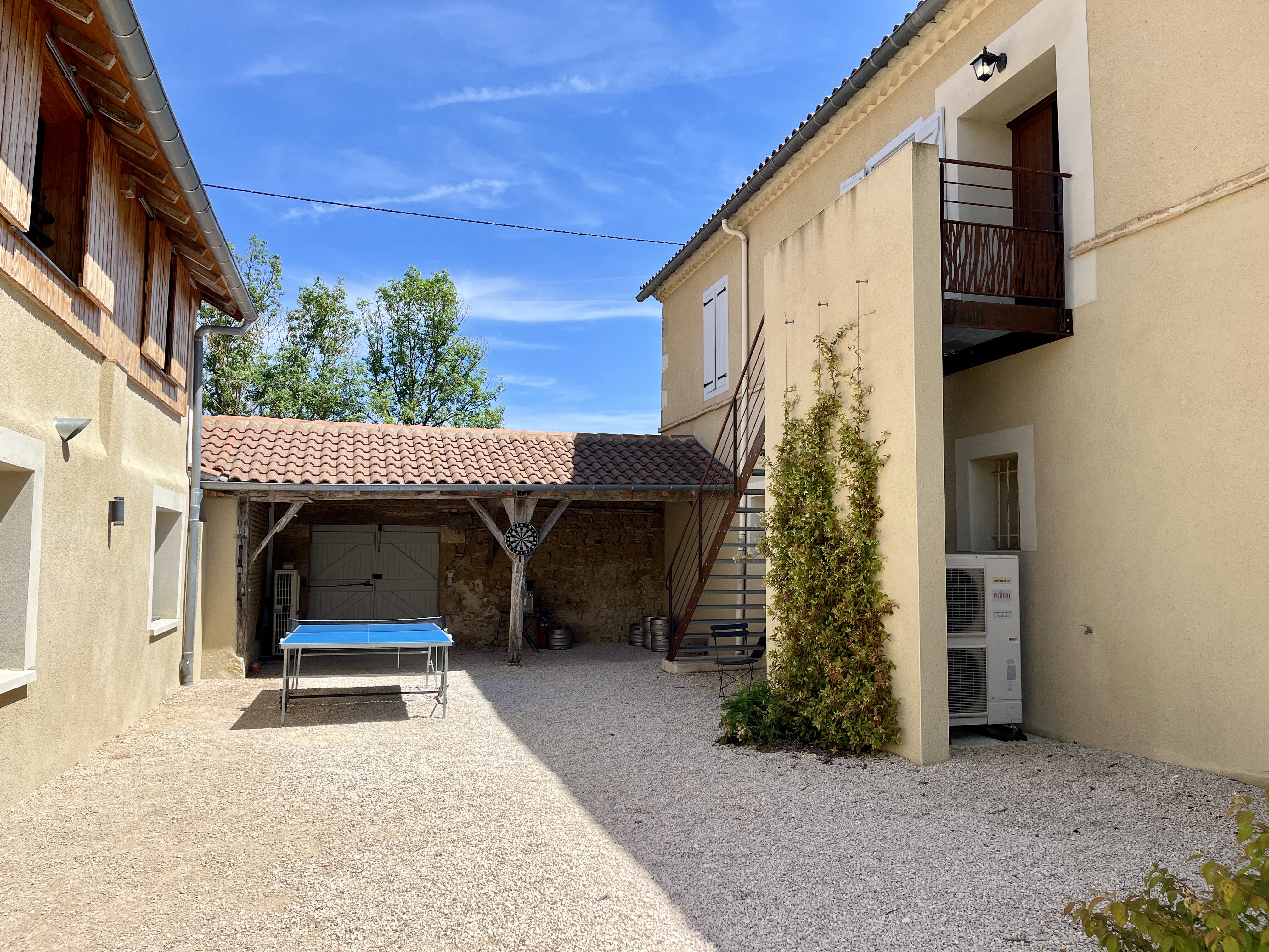 Les deux bâtiments sont côte à côte, à une dizaine de mètres l’un de l’autre et séparés par le patio de “l’espace zen”. Le gîte est totalement indépendant et les hôtes pourront profiter de la propriété en autonomie et totale exclusivité, le rez-de-chaussée de l’annexe étant privé et occupé de temps en temps par les propriétaires.